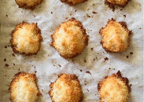 2. Mit einem Glacéportionierer Kokosmakronen formen (die Masse fest in den Portionierer drücken!) und auf einem Backblech verteilen.
