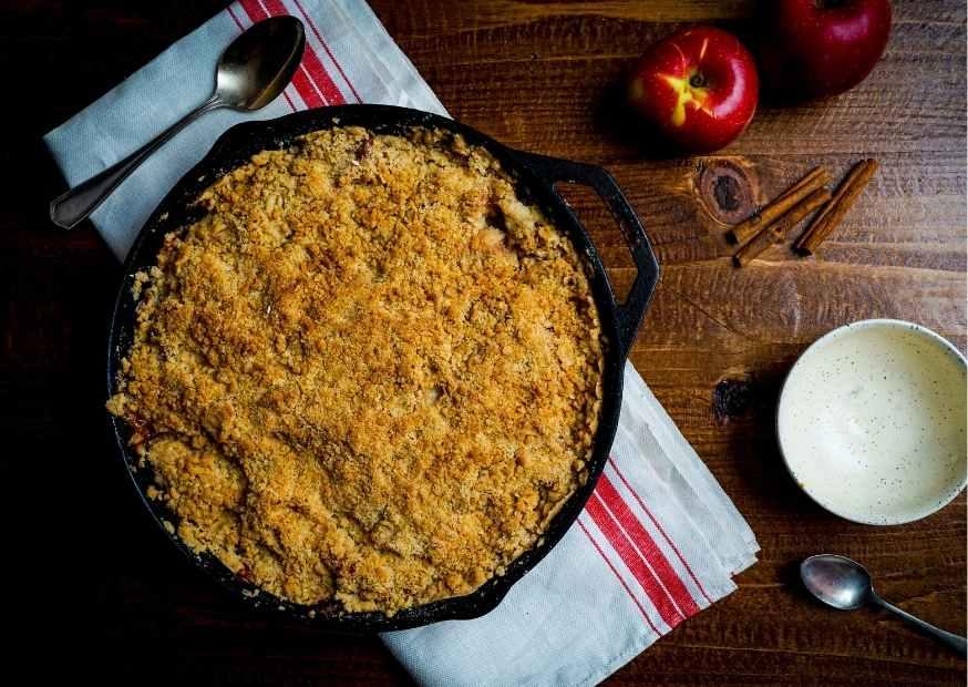 Mehl, Zucker und Vanillezucker mischen. Die Margarine in Flöckchen dazugeben und alle Zutaten mit den Händen zu Streusseln verarbeiten und gleichmässig auf den Äpfeln verteilen. Wenn die Streussel zu locker sind, mehr Margarine nehmen.